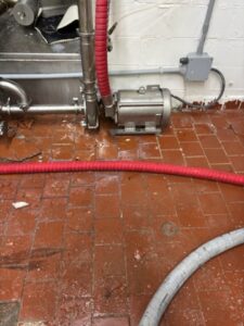 Our client’s production area was experiencing ongoing issues caused by a deteriorated quarry tile floor. Cracked tiles and worn grout joints were allowing moisture and bacteria to collect beneath the surface, creating sanitation and safety concerns that no longer met the facility’s strict regulatory requirements.